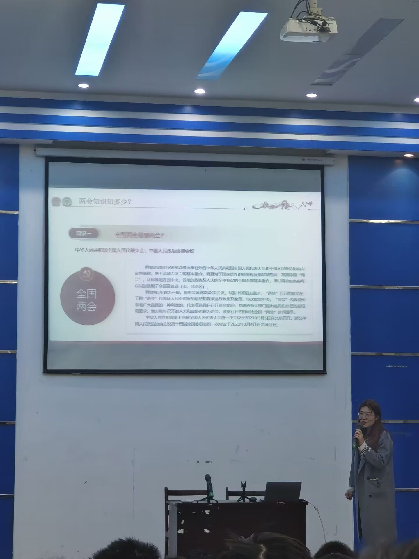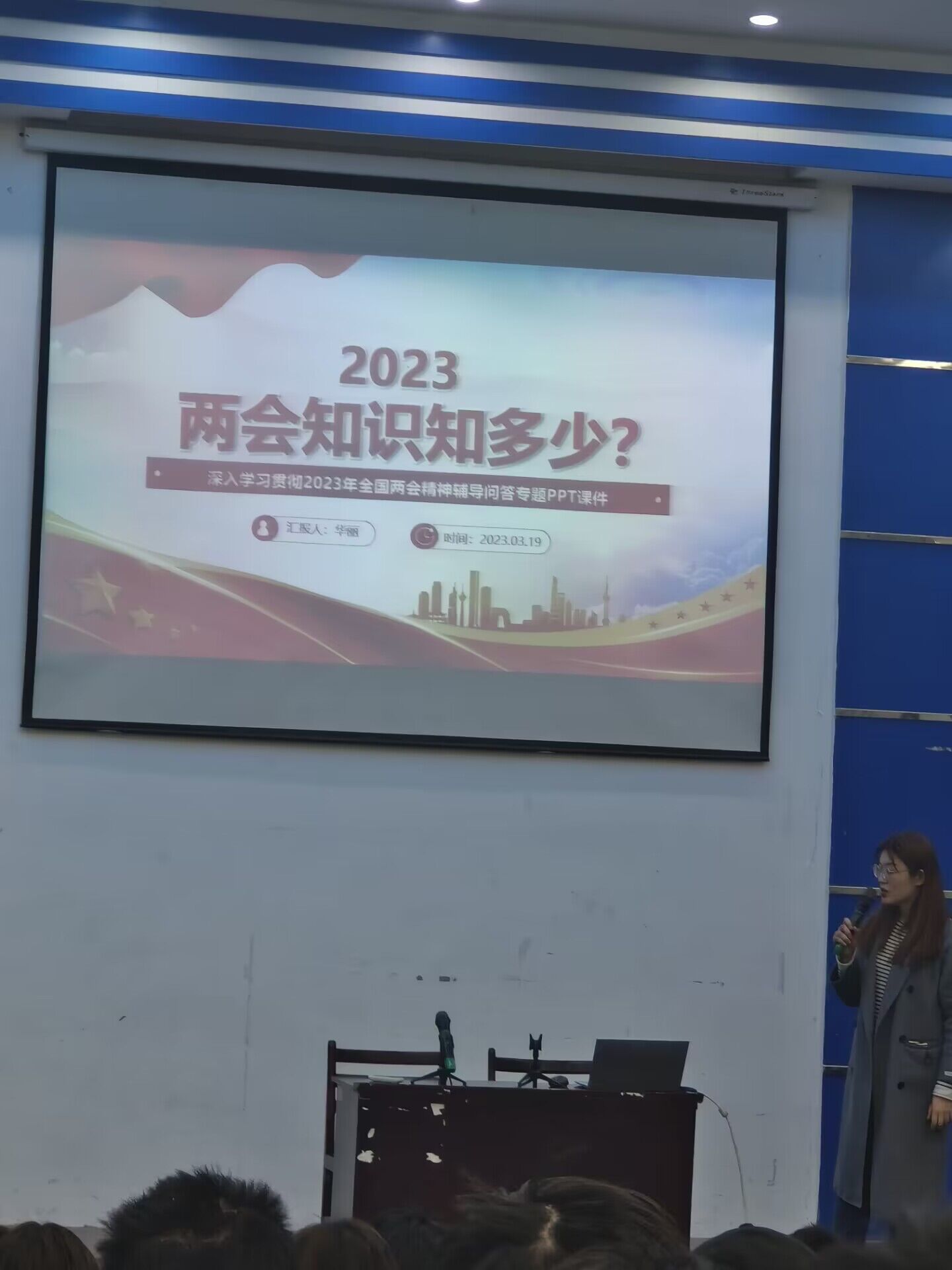 2023年3月我院利用周日晚点评时间在格物楼迪斯报告厅开展了关于两会精神的主题班会,各班班主任引导学生学习、了解两会的具体内容。通过同学们对两会的了解情况来与同学们互动,引导同学们学习两会精神,对同学们知识空缺的部分展开补充。