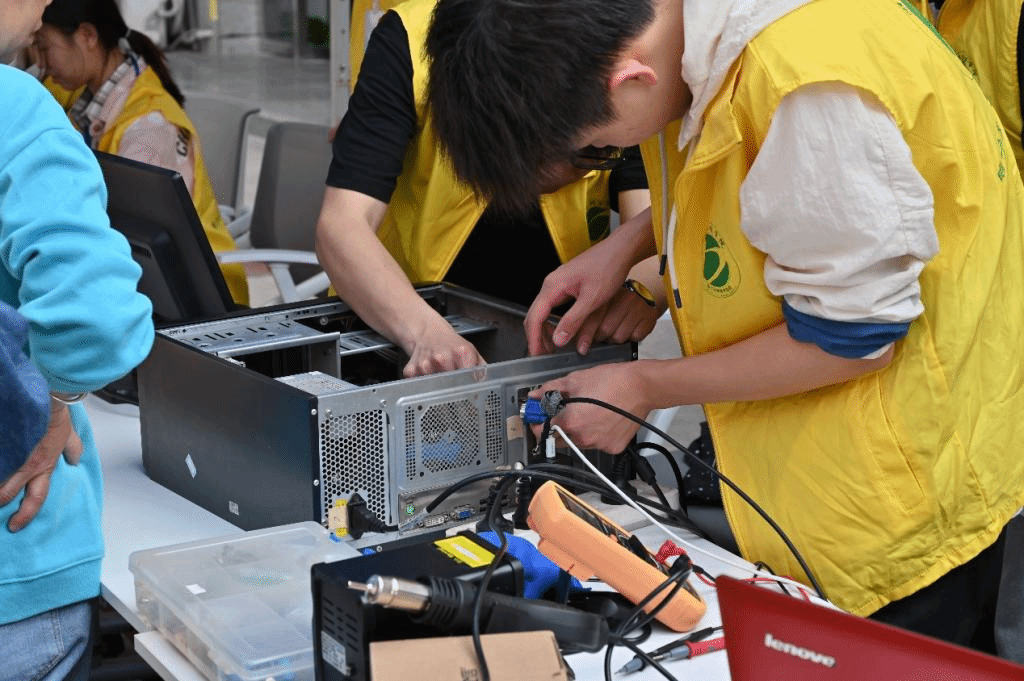 活动当天,李霄老师提前与诸赵社区负责人韩主任沟通了宣传活动,在活动开始之前,居民们就早早地带上需要维修的电器,在约定地点等待义务维修小分队的到来。在维修过程中,负责接待登记的志愿者进行维修登记和宣传工作,在登记好的电器上贴上标签;负责检测维修的志愿者领取家电进行维修;维修完成后,又将维修结果反馈给登记员,最后再由登记员联系居民们将电器领回。义务维修小分队的志愿者们分工明确,现场维修活动有序开展,社区工作人员对志愿者提出了高度赞扬,并表示希望未来能继续合作。