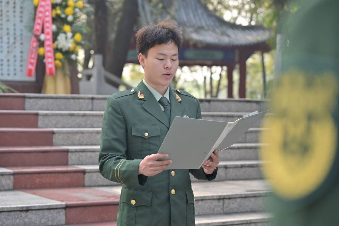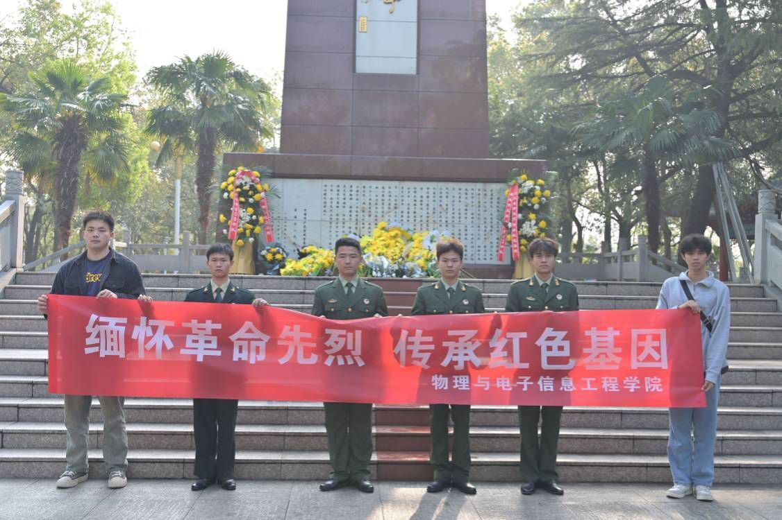在祭扫仪式的过程中,由物电学院优秀退役大学生聂玉宝对革命烈士致以悼词,引导大家永远铭记、尊崇一切为国家和名族作出牺牲和贡献的革命烈士,树立牢固的为中华民族伟大复兴的中国梦而努力奋斗的理想信念。