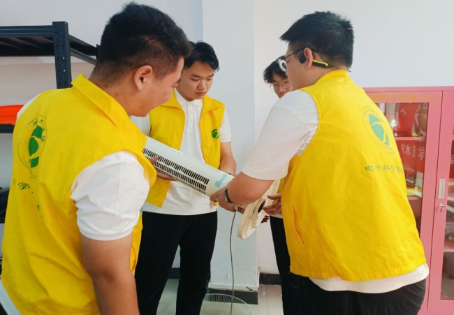 7月8日,小分队携手学校电子科学技术协会来到桃源社区,开展“家电义务维修+安全用电宣传”志愿服务。队员们分组行动,一组入户宣传,结合生活案例讲解“飞线充电”风险、漏电防护知识;一组驻点维修,为居民现场检修电饭煲、电风扇、微波炉等日常小家电。