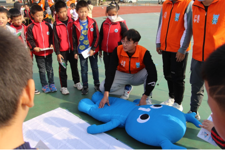 当前校园安全问题越来越引起人们的高度重视,保护好每一个孩子,使发生在他们身上的意外事故减少到最低,让他们健康安全的成长,是学校、社会的共同责任。为了进一步提升儿童应对危险的意识和能力,预防和降低灾害和日常意外事件对儿童带来的影响和伤害,2021年10月14日在陡岗中心小学,物电青协、数统青协的志愿者们加入生存救护培训老师的团体中去,为“教会儿童自救,提高生存能力”献一份力!