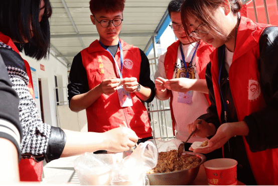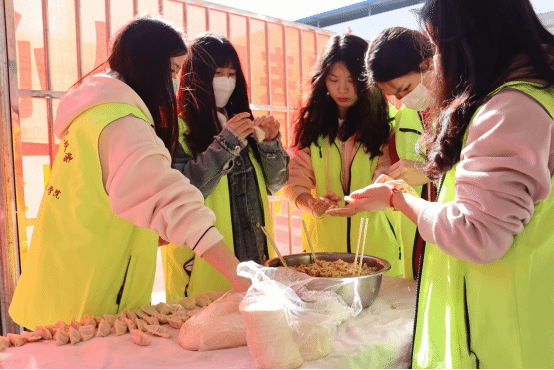 最后大家都变身为饺子师傅为老人包起了饺子,整个包饺子的过程都井然有序每个人都分工明确志愿者用娴熟的手法包着一个又一个饺子。很快就把准备好的材料包成了一个个好看的饺子。