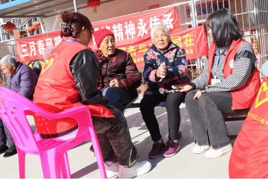 活动过程中,志愿者与福乐老年公寓的老人们进行了互动交流,在交谈过程中,老人们分享着他们的故事,志愿者在一旁仔细聆听。