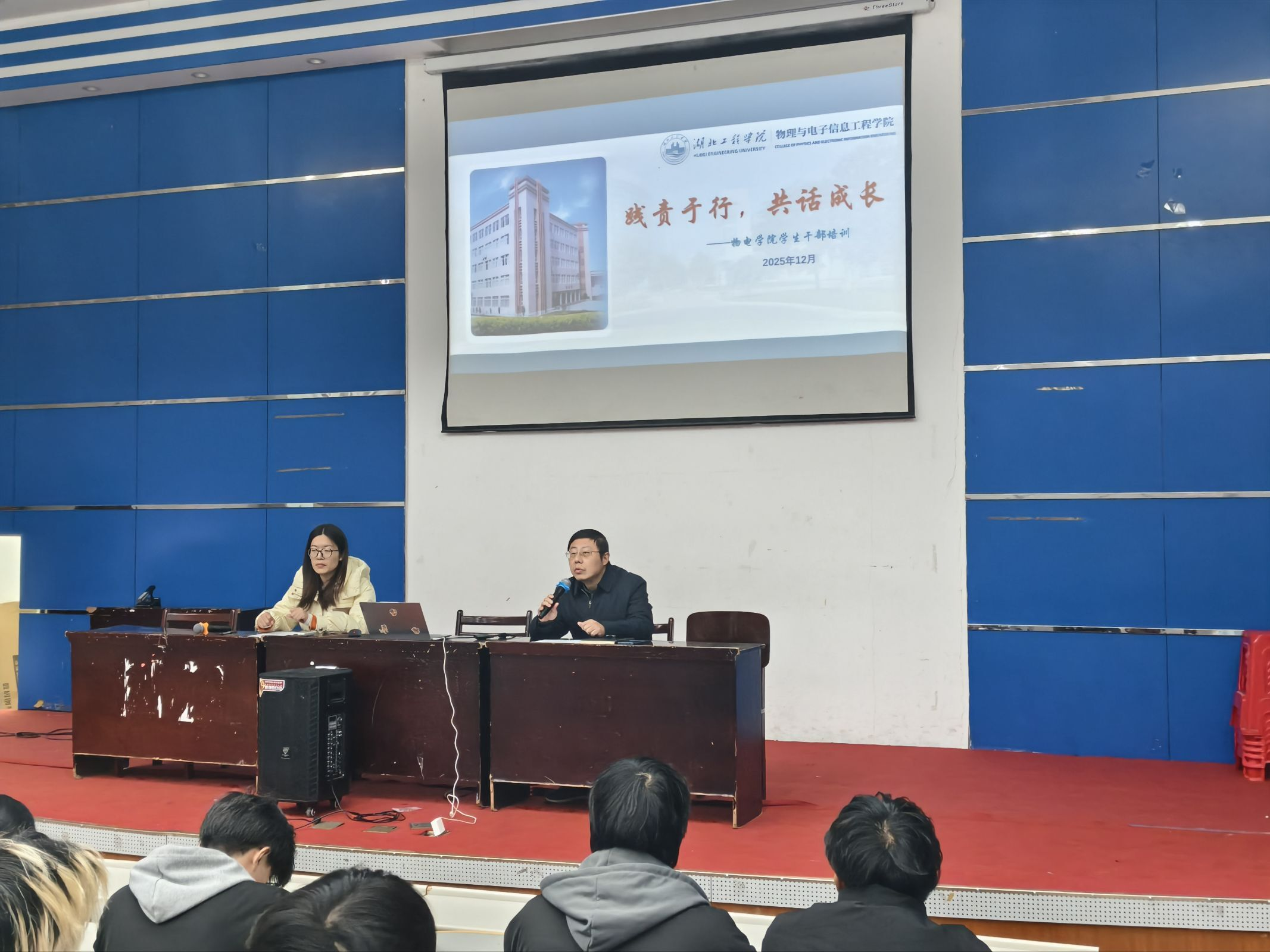 首场培训由学院党委书记石钧与辅导员华丽老师主讲。他们紧密结合学生工作实际,深入阐释了“践责于行,共话成长”这一主题的内涵。在培训过程中,着重强调了学生干部所肩负的责任担当以及实践价值,引导学生干部们深刻思考自身在学生工作中的角色定位,帮助他们明确成长方向,坚守工作初心,为后续更好地开展工作奠定坚实的思想基础。