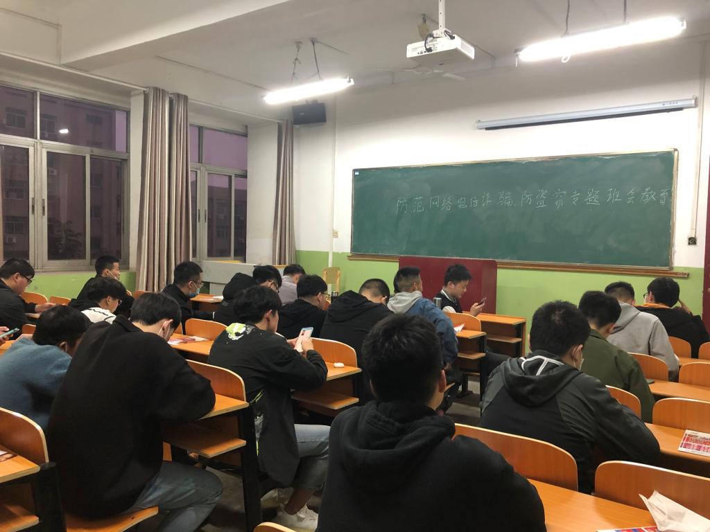 班主任老师从当前学校发生的诈骗案例出发,分析诈骗的一贯手段:虚假购物类,冒充领导、熟人类,冒充电商客服,平台投资类,刷单返利类,裸聊敲诈勒索类等各类型案例。并结合案例分析了大学生容易被骗的原因,详细地讲授了防范电信诈骗相关知识。同时班长结合当前我校学生在南大门外频繁丢失手机和各类盗窃案件,提醒广大同学,外出校园一定要看管好自己的随身物品,不做“低头族”不给小偷可乘之机。