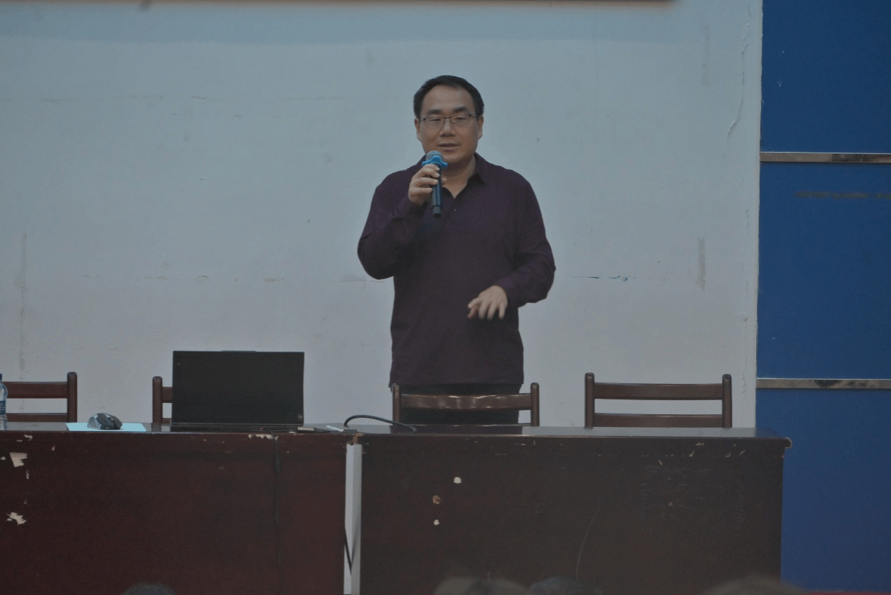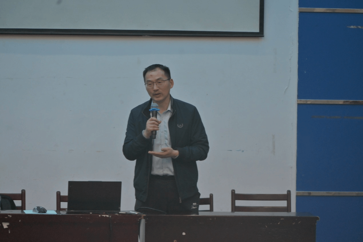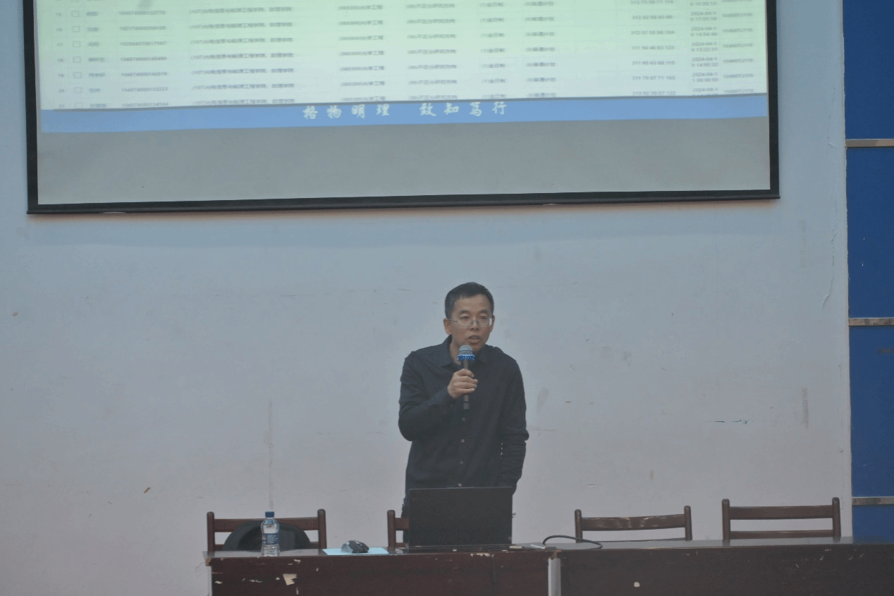 大会第一项,由秦平力教授讲话。他先是给同学们讲解了当今时代考读研的必要性,接着又给同学们介绍了研究生阶段的三年会做什么事情。最后他向同学们详细介绍了武汉工程大学光电信息与能源工程学院的研究生专业和方向。