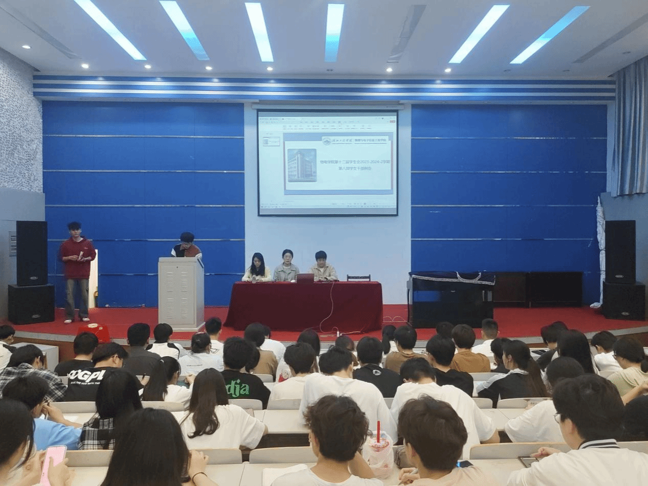 (通讯员 黎锦阳)2024年4月15日,物电学院学生干部第八周例会在格物楼报告厅召开。此次例会汇聚了辅导员李霄、彭宇航、华丽,各部门部长以及全体学生干部,共同回顾上一周的工作成果,并部署下一周的工作重点。