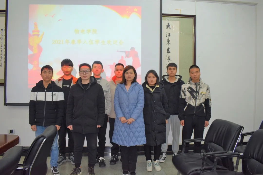 3月5日下午,williamhill中国2021年春季大学生应征入伍欢送会在格物楼209会议室举行。物电学院党总支副书记许幸子、征兵工作辅导员贾岩、入伍新兵、学生代表参加了欢送会。许幸子主持欢送会。