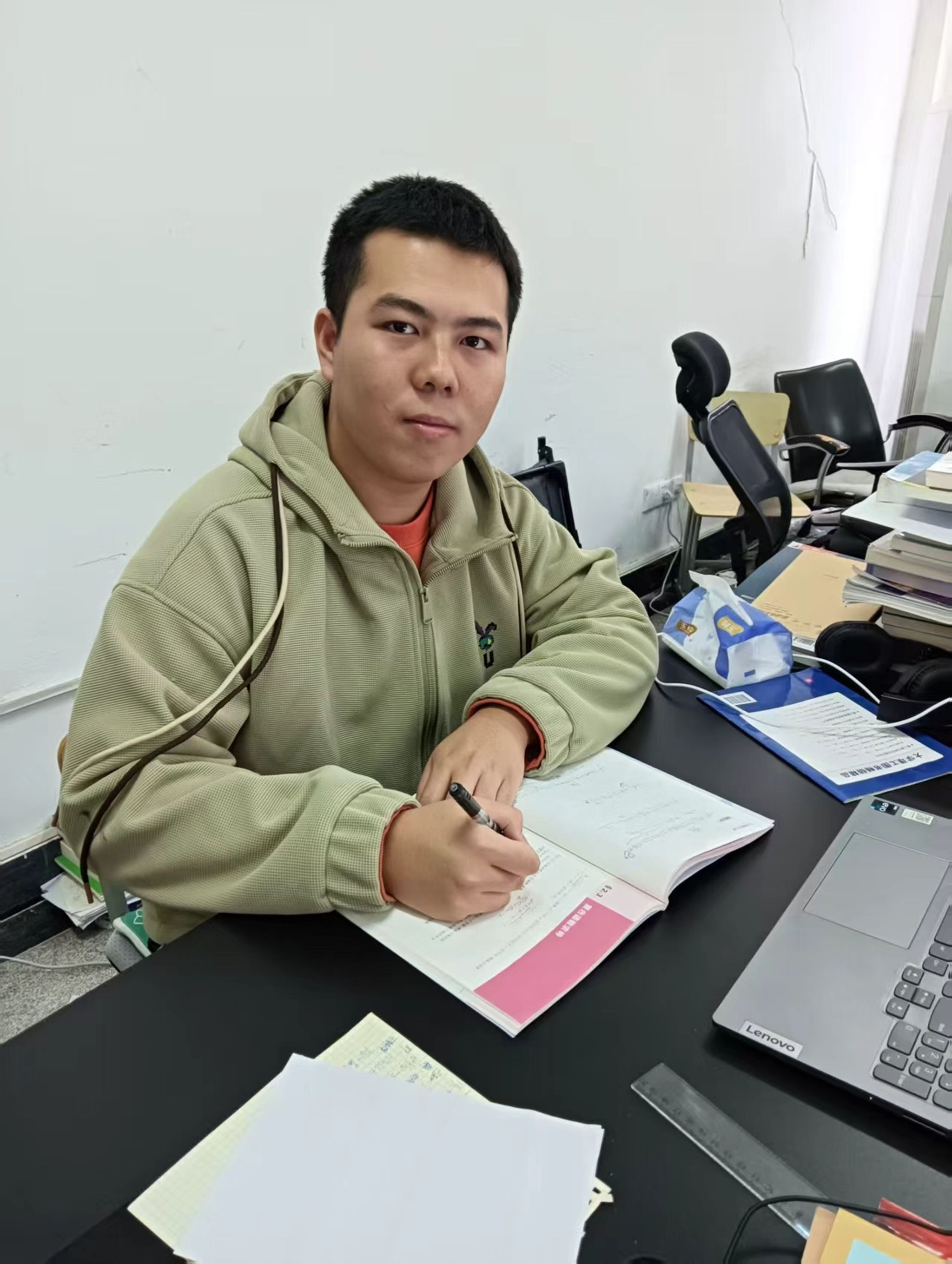初入大学,我对科研和竞赛就充满期待。刚开学时,班主任让我们写一封信给未来的自己。望着黑板上那句“青春的我们朝气蓬勃”,我提笔写下:“希望大学过得充实而有趣,去体验不一样的生活,比如考取证书、参与项目、完成一次比赛。”那时起,科研与竞赛这颗小小的种子便在我心里悄悄种下,推着我在这条路上一直往前走。