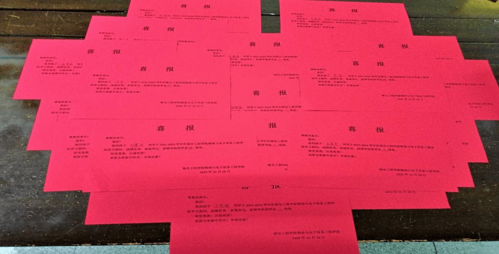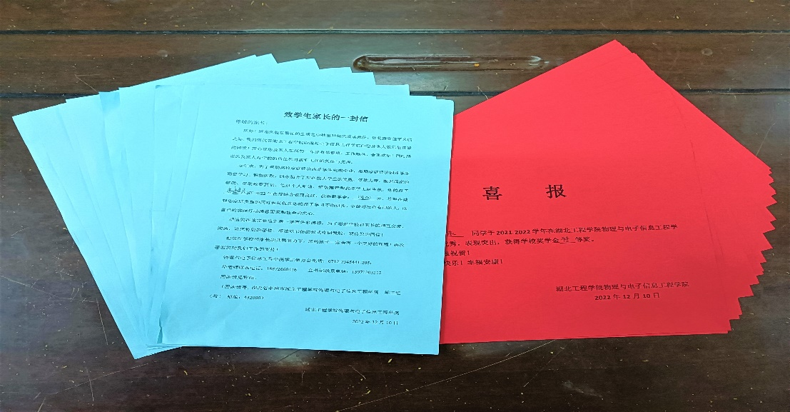 我院特意为获得学校奖学金的学子准备了喜报。虽然只是一份薄薄的喜报,传递的却是浓浓的深情。以喜报的形式同家长分享学生成长过程中的收获,有效丰富了家校协同育人的载体,强化育人共识、凝聚育人合力,充分激发家庭在学生成长成才中的关键作用,将育人工作做得既有新意亦有心意,既有温度亦有深度,引导学生积极进取、诚信感恩、奋发有为,在新时代贡献属于城科学子的青春力量。