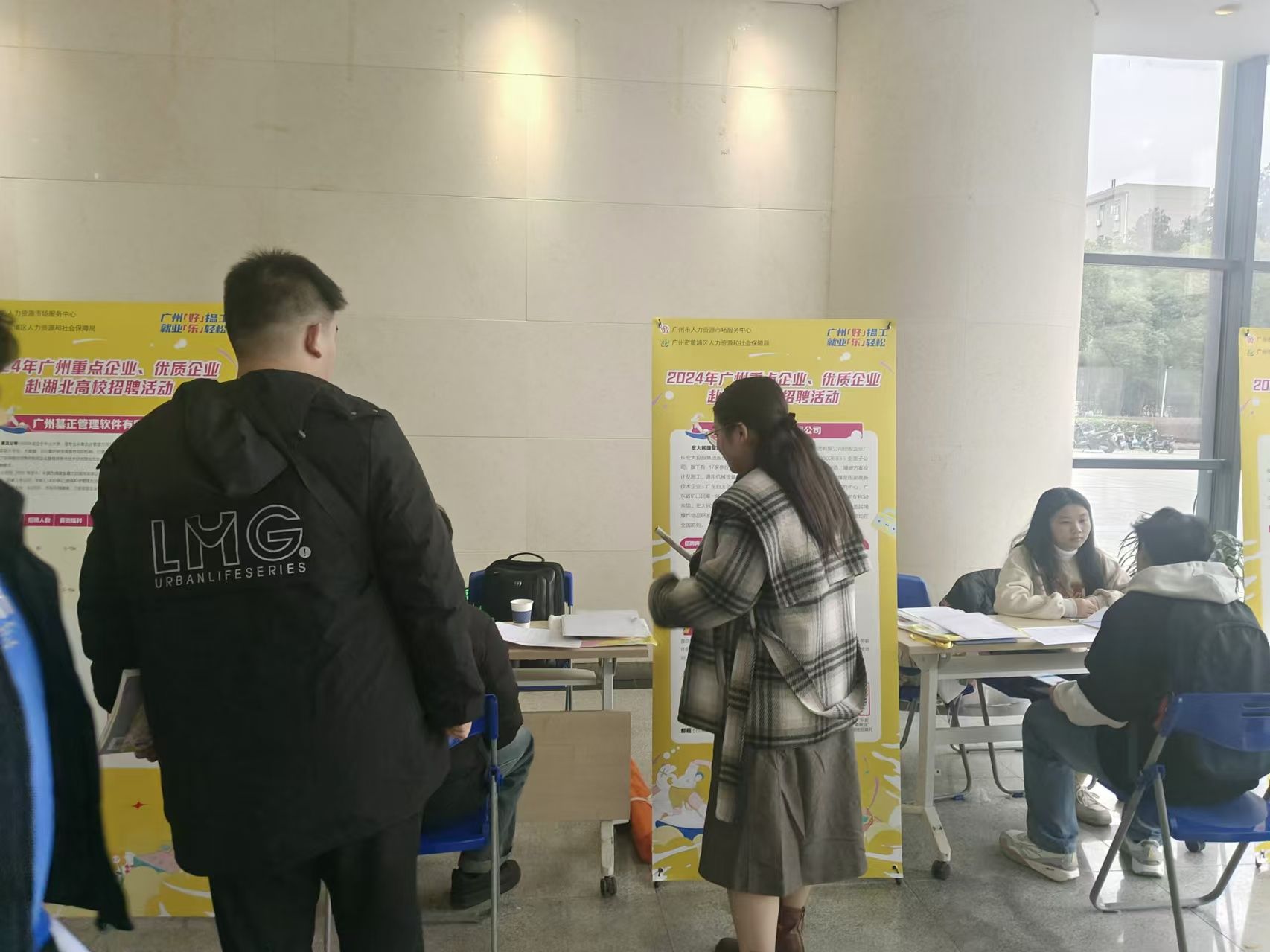 2024年11月26日下午14:30,广州人社局携手William希尔,在湛林体育馆成功举办了“广州重点企业 优质企业湖北高校招聘活动”。此次招聘活动吸引了来自广州的20家重点及优质企业。物电学院党委副书记黄文娟、辅导员姜莹亲临现场,耐心细致地为毕业生们解读广州地区的就业政策,提供个性化的职业规划建议,帮助他们更好地把握就业机会。