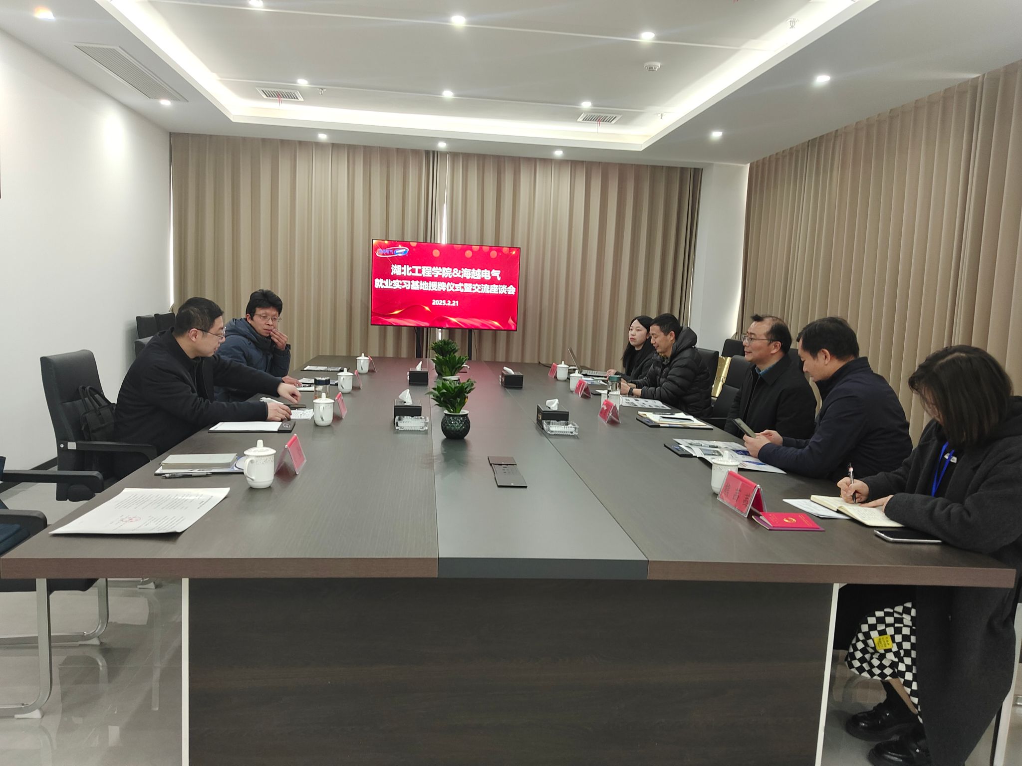 海越电气公共事务部负责人乐倩倩随后介绍公司概况,并播放企业宣传片。物电学院党委书记石钧对海越电气的生产经营情况给予高度赞扬,并介绍了物电学院相关专业设置。他表示,学院愿意在实习基地、社会服务、项目和平台申报及奖项申报等多个方面与海越电气深化合作。物电学院实验室主任李吉希望企业能提供更多关于内部环境的宣传片,以吸引更多学生前往海越电气工作。