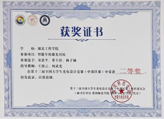 7月18-20日,由中国光学学会主办、黄冈师范学院承办的第十三届全国大学生光电设计竞赛(中部区赛)决赛在黄冈师范学院举行。中南地区近50所高校的600余名选手同台竞技。物电学院学子第二次参赛,一支队伍获赛区二等奖。全国大学生光电设计竞赛由中国光学学会主办,竞赛旨在促进光电知识普及,加强大学生实践、创新能力和团队精神的培养与锻炼,促进高等教育改革。该赛事是国内光电类级别最高、参赛队伍最多、影响最大的一项全国性A类赛事。