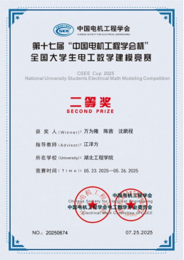 5月23日至26日,在第十七届“中国电机工程学会杯”全国大学生电工数学建模竞赛中,我院获得全国二等奖3项,三等奖13项。据悉,本次竞赛参加高校和二级学院共968所,10855队选手报名参赛。“中国电机工程学会杯”(简称“电工杯”)全国大学生电工数学建模竞赛,是中国电机工程学会电工数学专委会主办的面向全国大学生的科技活动,旨在紧密结合教学实际,注重基础关注前沿,促进电气类专业建设,加强学生动手能力、创新能力和协作精神的培养,提高学生针对实际问题进行数学建模及分析的综合能力,吸引、鼓励广大学生踊跃参加课外科技活动,为优秀人才脱颖而出、服务社会发展创造条件。