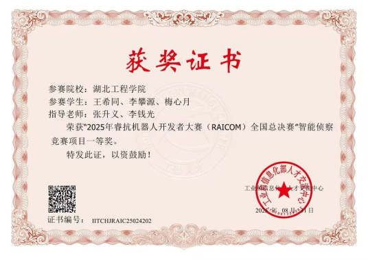 8月19日,历时4个月,2025年睿抗机器人开发大赛全国总决赛CAIR智能侦查赛在沈阳航空航天大学开赛。比赛分为预赛和决赛两个阶段,预赛中,我院学生获得一等奖项、二等奖项共4项。决赛中,王希同组以第一名(并列)满分成绩获得全国一等奖,其他3支决赛队伍均获得全国二等奖。睿抗机器人开发者大赛(RAICOM)创办于2015年,由工业和信息化部人才交流中心主办,是我国机器人及人工智能创新领域具有权威性的A类综合类赛事。本届大赛以“机器照护人”为主题,分为CAIR工程竞技、CAIA数字文化创意、CAIM工程创客和CAIP信息技术创新四个赛道,旨在推动机器人与人工智能技术的创新应用,促进跨学科协同,服务于产业发展所需的人才培养。