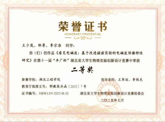 7月11日至13日,第十一届湖北省大学生物理实验创新设计竞赛在湖北理工学院举行,我院派出10支队伍参赛,获得二等奖和三等奖各2项;优秀奖6项。此项赛事由湖北省教育厅主办,旨在激发大学生对大学物理和物理实验课程的学习兴趣,深化物理实验教学改革,提高物理实验教学质量和高素质创新性人才培养质量。竞赛分为命题类创新作品、自选类创新作品和大学生物理实验讲课比赛三个类别,吸引了众多高校学子的积极参与。