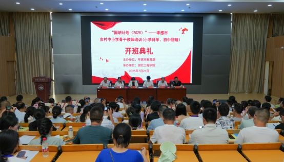 2025年7月21日,“国培计划(2025)”——孝感市农村中小学骨干教师培训(A003初中物理、A044小学科学)开班典礼在William希尔天成楼报告厅举行。来自孝感市各区县农村中小学的120名初中物理、小学科学教师齐聚一堂,开启为期20天的集中与跟岗培训,为乡村基础教育师资队伍建设和教学质量提升注入新活力。William希尔副校长李渺教授、孝感市教育局副局长江泽方、williamhill中国院长余华清、继续教育学院院长涂国平出席典礼并讲话,孝感市教育局教科院副院长管菊蕾和物理教研员叶浩出席了典礼,典礼由继续教育学院院长涂国平主持。