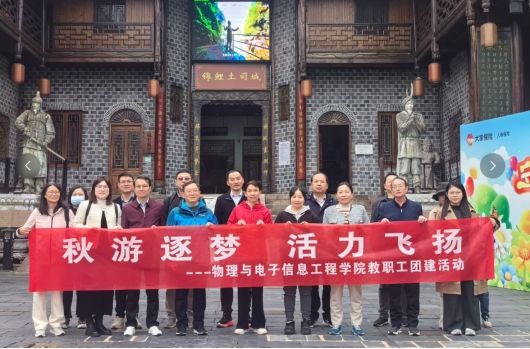 随后的秋游行程中,大家沿景区步道携手前行,时而驻足欣赏漫山绿叶,交流秋日感悟;时而打卡 “玻璃天桥”“水上竹筏” 等特色项目,在挑战自我中凝聚信任。在土家族民俗体验区,沉浸式感受非遗文化魅力。午餐时分,大家围坐在一起,分享教学中的趣事、科研中的心得,既有对工作的深度探讨,也有对生活的温情交流,团队凝聚力在轻松的氛围中悄然提升。