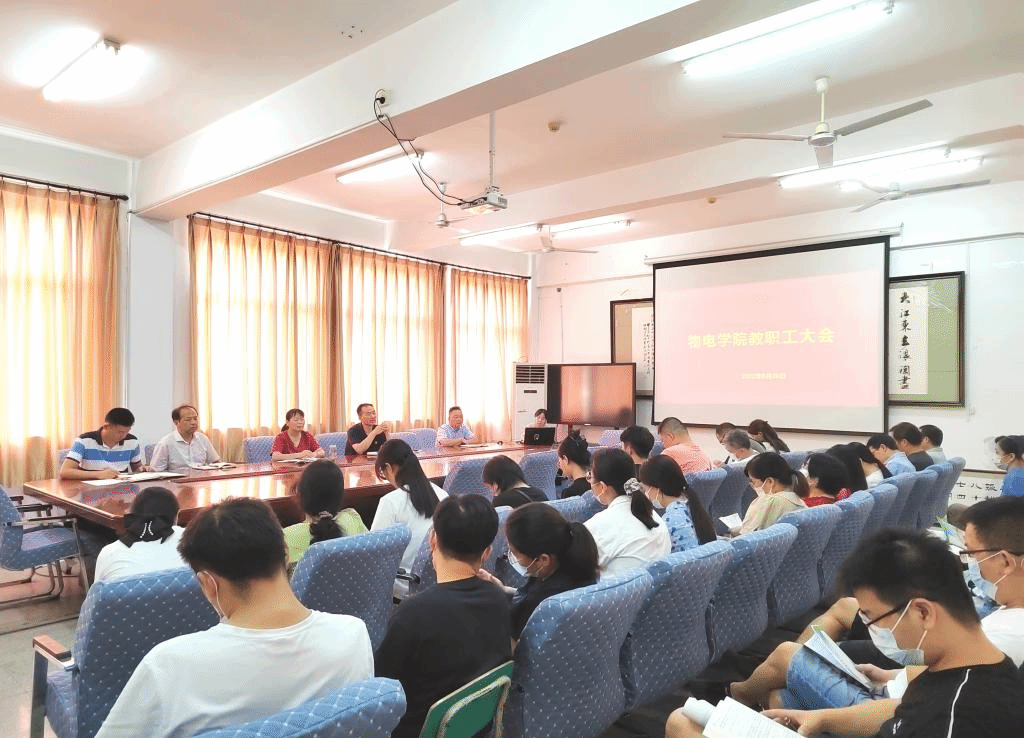 院长余华清从三个层面总结了暑期工作,感谢相关老师暑期坚守岗位辛勤付出;欢迎各位新老师加入物电大家庭;请求大家一如既往热心支持帮助新进老师开展好工作。并对新学期硕士点申报建设、科研工作,专业认证等重点工作进行周密部署安排,并希望大家及时收心归位,调整状态,以饱满的精神状态投入工作。针对近期和下学期各项工作,余华清强调了“六个到位”,即:思想认识到位、人员责任到位、安全责任到位、防疫措施到位、教学准备工作到位,新生入学准备工作到位。