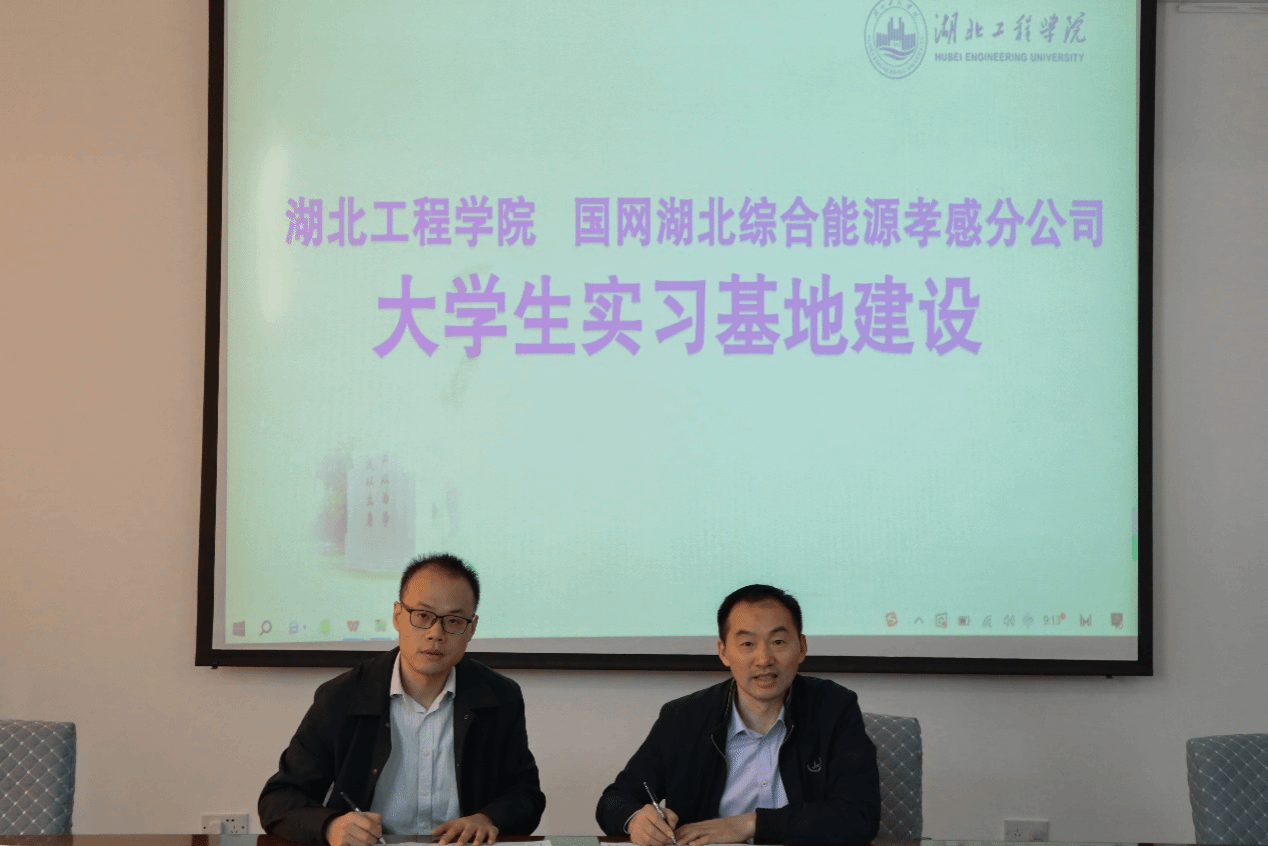 国网湖北综合能源孝感分公司负责人余义(左)与williamhill中国院长余华清(右)签订大学生实习基地建设协议