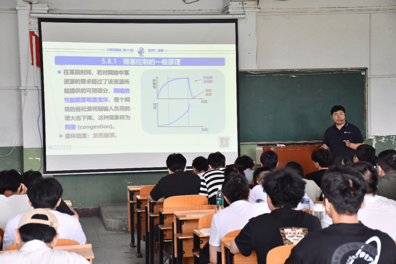 彭祺老师的公开课主要涵盖了《计算机网络》课程中运用TCP窗口协议进行网络拥塞控制。他着重将思政元素巧妙融入专业内容,让知识传授与价值引领同频共振,有效提升了学生们的专业素养和思政素养。在公开课现场,彭祺老师以生动具体的案例,深入浅出地讲解了TCP窗口协议的原理和应用,引导学生们深入理解网络拥塞控制的重要性和必要性。