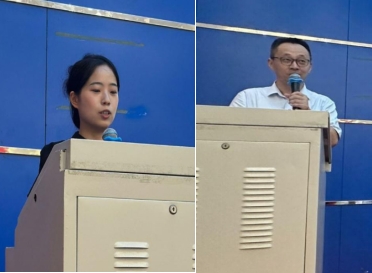 学院教师代表陈影影博士鼓励新生们要像植物一样深深扎根于知识的土壤,像海绵一样不断吸收知识的养分,以脚踏实地的态度、不畏艰难的勇气,跑出成长的加速度,用智慧和青春绘制人生的美好蓝图。