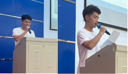 物电学院的大三优秀学生代表——退役军人刘国成分享了自己的大学成长经历与深刻感悟。他以亲身经历为引,鼓励新生们勇敢面对大学生活的新挑战,享受成长的乐趣,让在场的每一位新生都感受到了来自学长的温暖与鼓励。