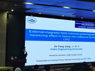 在该会议中,江泽方做了题为“大型强子对撞机上顺磁挤压效应的研究”的报告,汇报了强相互作用物质-夸克胶子等离子体(QGP)-受到强磁场作用下费米(fm)量级的挤压和伸缩效应。该报告的主要理论工作由江泽方副教授与我院物理学专业本科生张子含、袁雪菲以及华中师范大学张本威教授合作完成,成果发表于2024年5月美国物理评论C辑(Phys. Rev. C 110, 014902, 2024)。参与此次国际会议并有机会做报告反映了我院理论物理研究水平有提高,也是我院物理学专业落实立德树人根本任务,提升人才培养质量的体现。