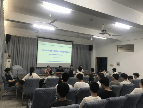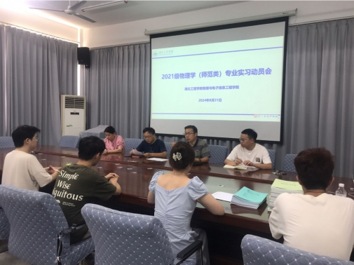 8月31日下午,物电学院在格物楼209会议室召开了2021级物理学(师范)专业实习动员会。学院副院长李钱光,物理学系主任聂长江,指导老师陈知红,班主任刘军以及21级物理学班全体学生参加会议。会议由物理学系主任聂长江主持。