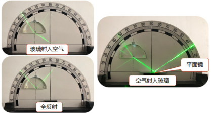 (1)设计实验:传统实验采用半圆形玻璃砖,当光从玻璃射入空气时,有可能发生全反射;细心的同学会发现,当光沿半径入射时,传播方向不变,无形中增强了学生的认知障碍。改进后,加装平面镜,利用反射沿圆心入射,但操作困难。