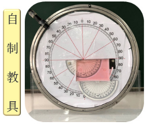 我将它微型化,将水装入薄的亚克力箱,可旋转的圆盘方便改变入射角的大小,加装几个量角器,将定性分析变为定量研究。本实验不但可以探究光从空气射入水时的折射规律,撕去底部的胶带还可以探究光从水射入空气时的折射规律;既能演示光路的可逆性,又能呈现动态规律。